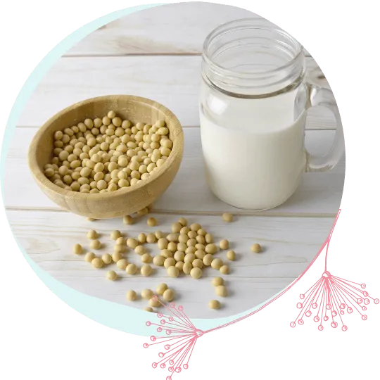 Preparatele din soia conțin izoflavoni din soia, niște substanțe asemănătoare hormonilor sexuali feminini care au un efect benefic asupra sănătății și bunăstării, stimulează metabolismul, scad nivelul colesterolului din sânge și îmbunătățesc elasticitatea vaselor de sânge.